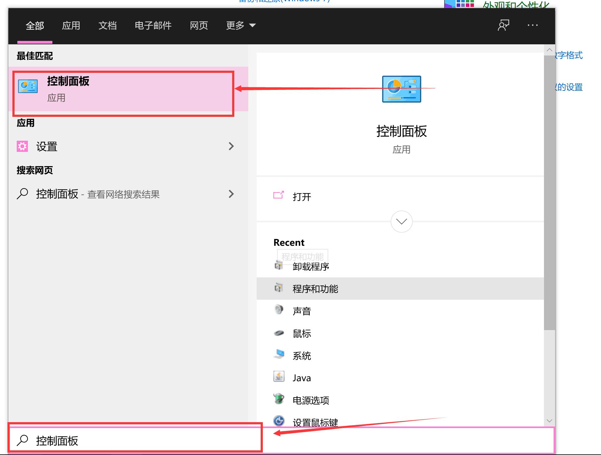 第一步,点击计算机左下角的开始,找到搜索按钮并点击,在弹出菜单中搜索“控制面板”,