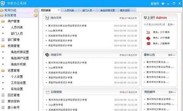 中软办公系统集众多功能于一身,系统既保留CS应用程序在作和应用广泛,使用的即时,也兼顾了BS在升级和的方便,使用人员免安装的便捷,以适用于不同的用户人群。而且系统从设计上密切关注用户的作体验,以其简单易用而深得用户的欢迎。
