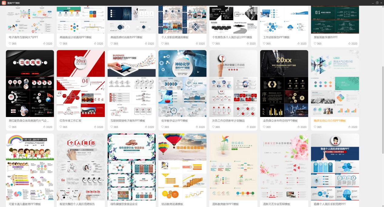 精美PPT模板软件版是一款相当实用的PPT模板平台应用,精美PPT模板软件最新版资源丰富,收集各种好看且实用的PPT模板,可以为电脑办公带来极大的方便,提升您的工作效率。精美PPT模板软件中的模板是以文件的形式存放的,因此您下载软件后,直接打开就可以使用了。