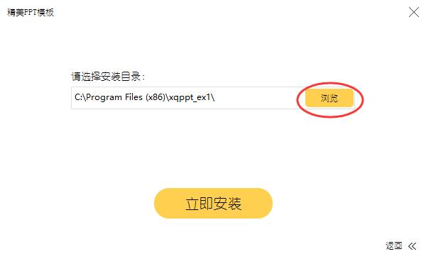 3、点击进入自定义安装界面后我们发现软件默认安装位置为“C:/Pgram Files (x86)/xqppt_ex1/”,小编建议点击“浏览”选择C盘以外的磁盘安装,选择好安装位置后点击“立即安装”即可