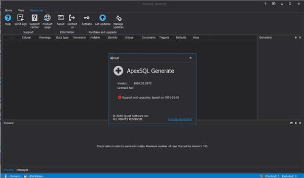 ApexSQL Generate最新版是一款专业的SQL测试数据生成器,ApexSQL Generate最新版支持广泛的SQL数据类型,ApexSQL Generate最新版将测试数据导出到SQL、XML、CSV、ON、Excel,软件能够模拟真实的测试数据,它能够生成指定表的SQL测试数据,软件能使用各种各样的预定义选项来自定义数据,例如种子、长度、最小值和最大值。