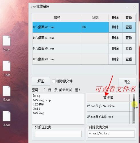 4.RAR批量解压版可以添加多个解压密码,软件都会尝试一遍,密码正确就解压。