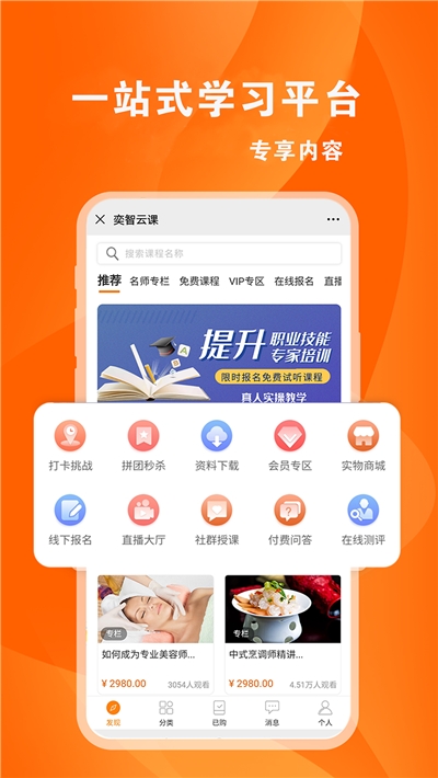 1、一站式学习服务软件,在这里拥有多种职业技能可以随时随地培训.